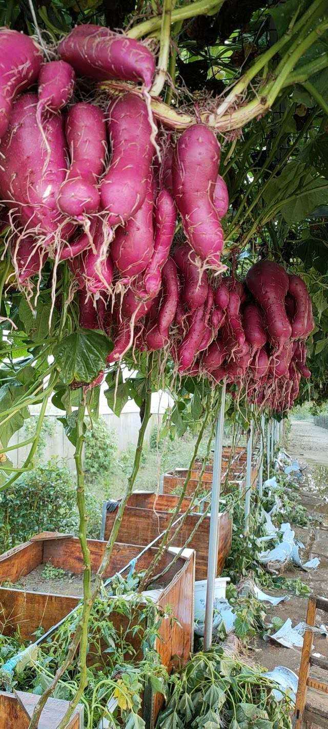 賈連東稱(chēng),自己目前栽培的“空中紅薯”,單株最大有三十多斤,并預計在2021年培育到八十至一百斤。之所以選用牽?;藿?,是因為其與紅薯是近緣植物,同屬于旋花科。